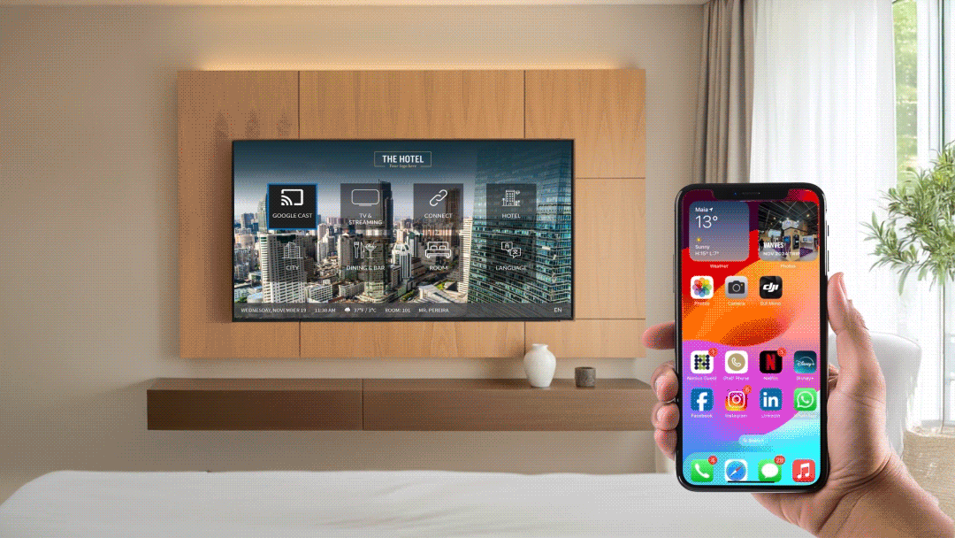 Wir waren Pioniere und haben mit unserer sicheren Dongle-Lösung erstmals Casting in Hotels eingeführt. Jetzt integrieren wir es direkt in Hospitality-TVs. Wir hören Hoteliers zu, wir passen uns an und wir entwickeln uns weiter, um sicherzustellen, dass unsere Technologie den Erwartungen der Gäste und den betrieblichen Anforderungen stets einen Schritt voraus ist.