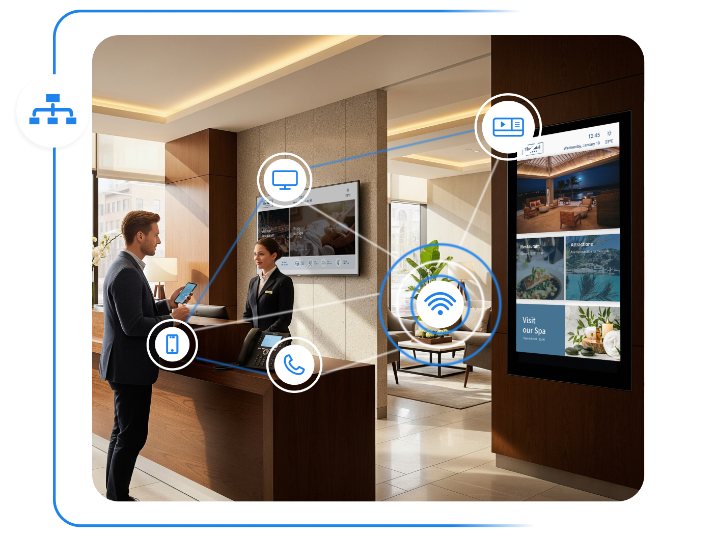 Soluções de redes geridas para garantir experiências perfeitas aos hóspedes e operações hoteleiras eficientes.