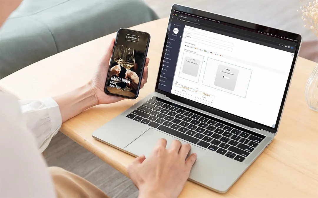 Guests will watch your full-screen, high-impact video! Content that you can upload, schedule and change at any time.